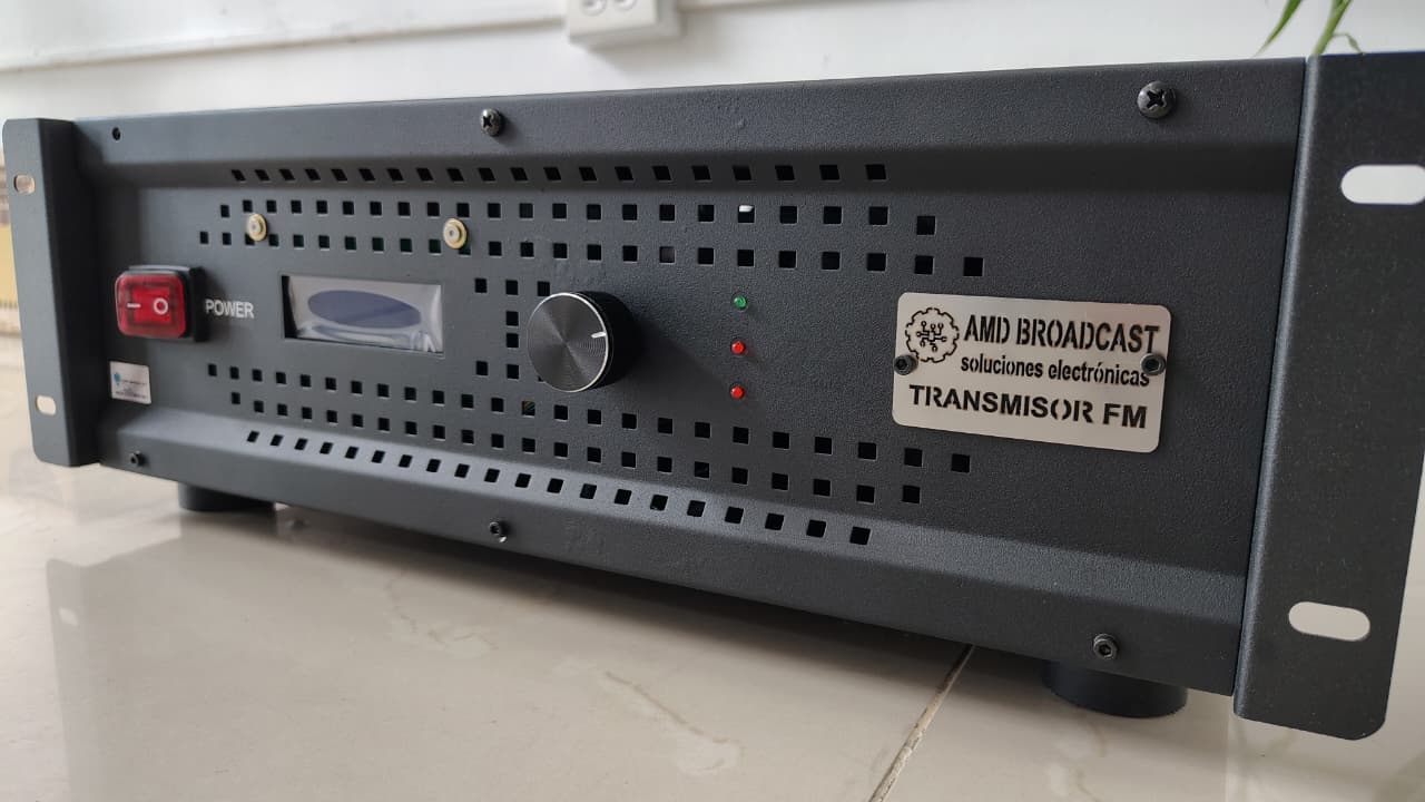 Transmisor Fm Estéreo, programable en la banda del FM desde 88.0 a 108.0 MHZ, transmisor con entrada de audio L y R balanceada de alta calidad, L y R RCA profesional y control de volumen externo, entrada de audio MPX con control de volumen, parámetros de medición en su parte frontal display digital, medición de potencia directa, potencia reflejada, temperatura, modulación de audio al aire Estéreo y MPX, ventilación, sistema inteligente de protección contra roe, temperatura y ausencia de antena.